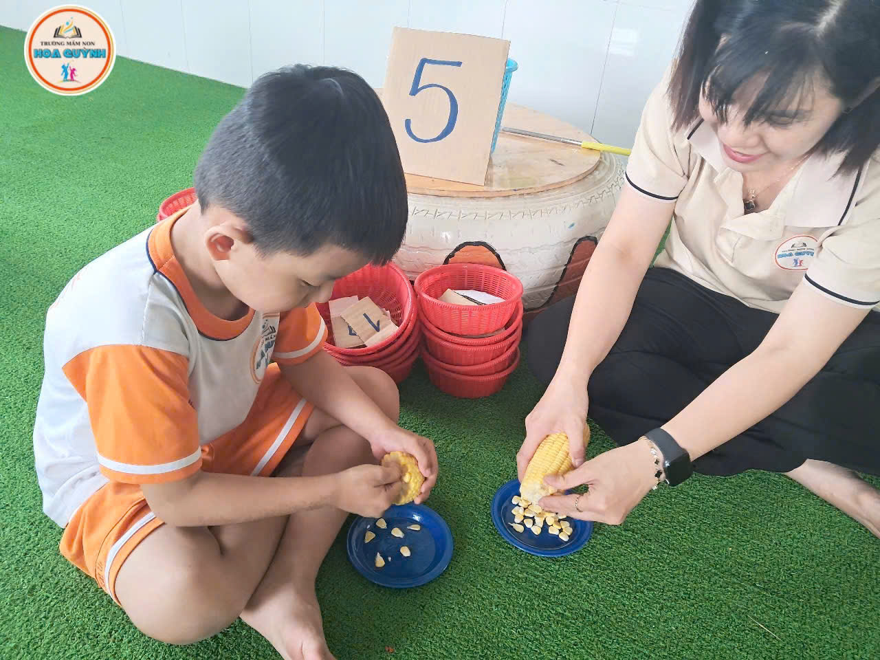 🌽 Các bạn lớp Chồi 1 học nhận biết số 5 và dùng hạt bắp xếp hình số đã học. Mời ba mẹ cùng xem giờ học toán của các bạn ấy nhé!