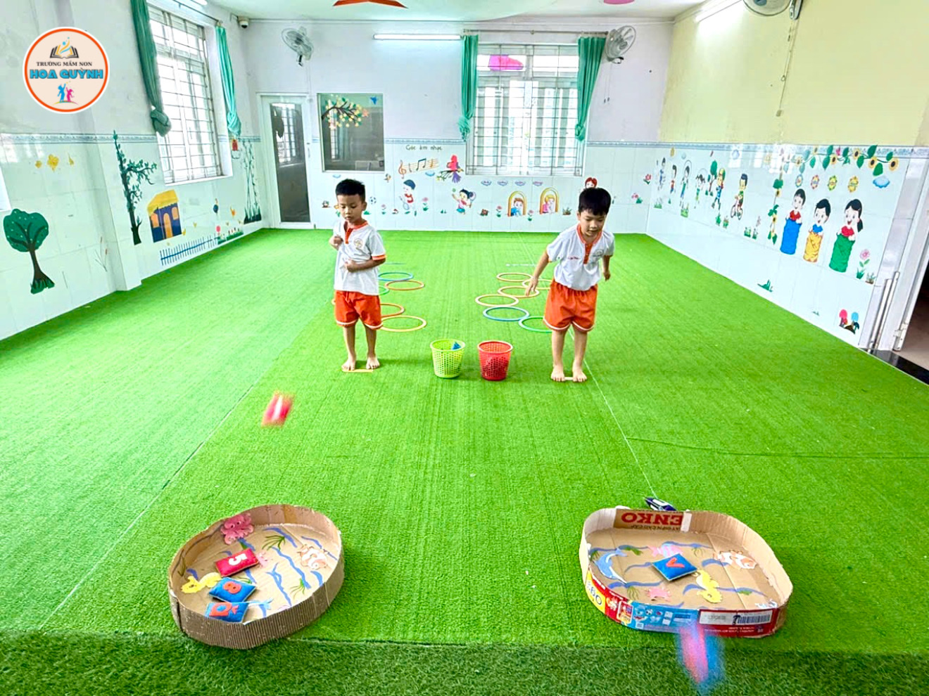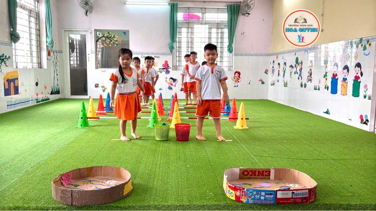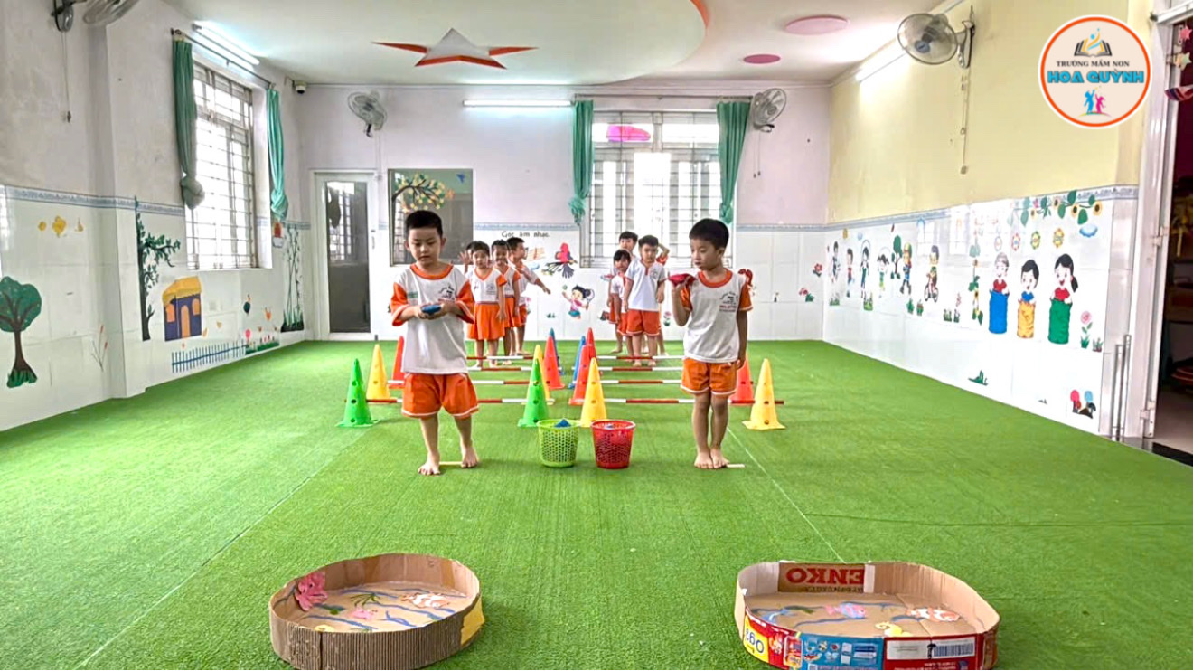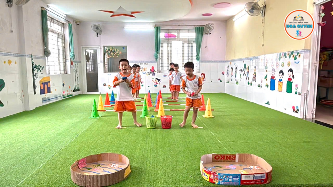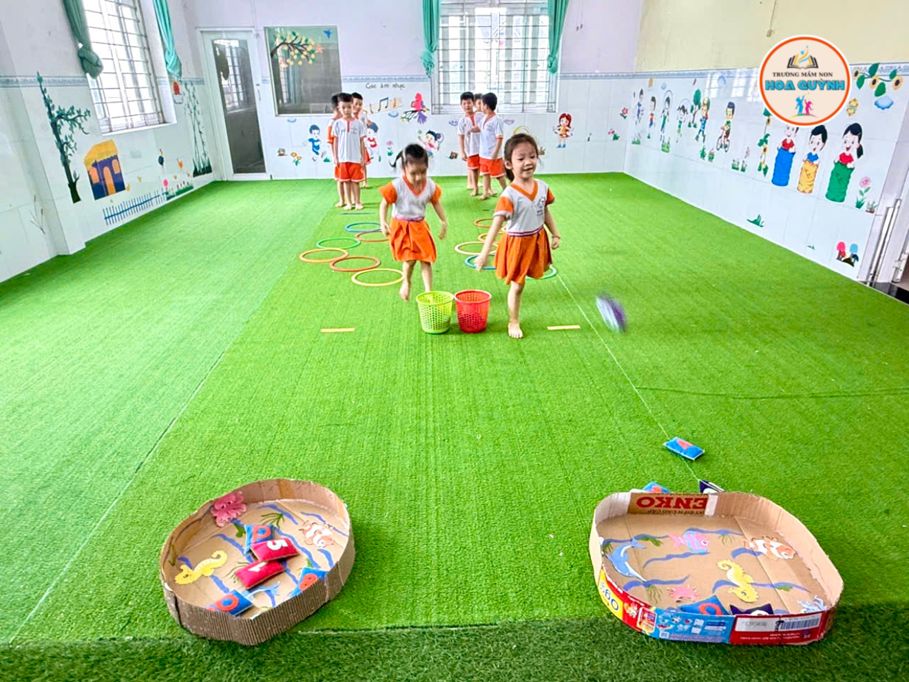 🥰 Bài tập phối hợp vận động bật liên tục và ném xa qua trò chơi “Ném thức ăn cho cá” mang lại cho các bạn nhỏ khối Lá những lợi ích như: