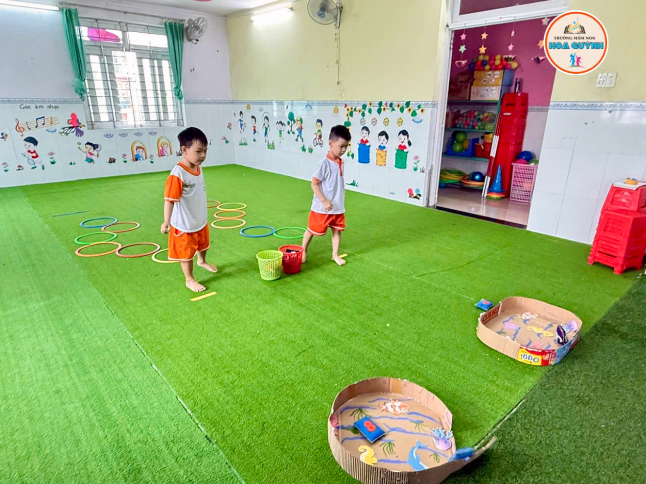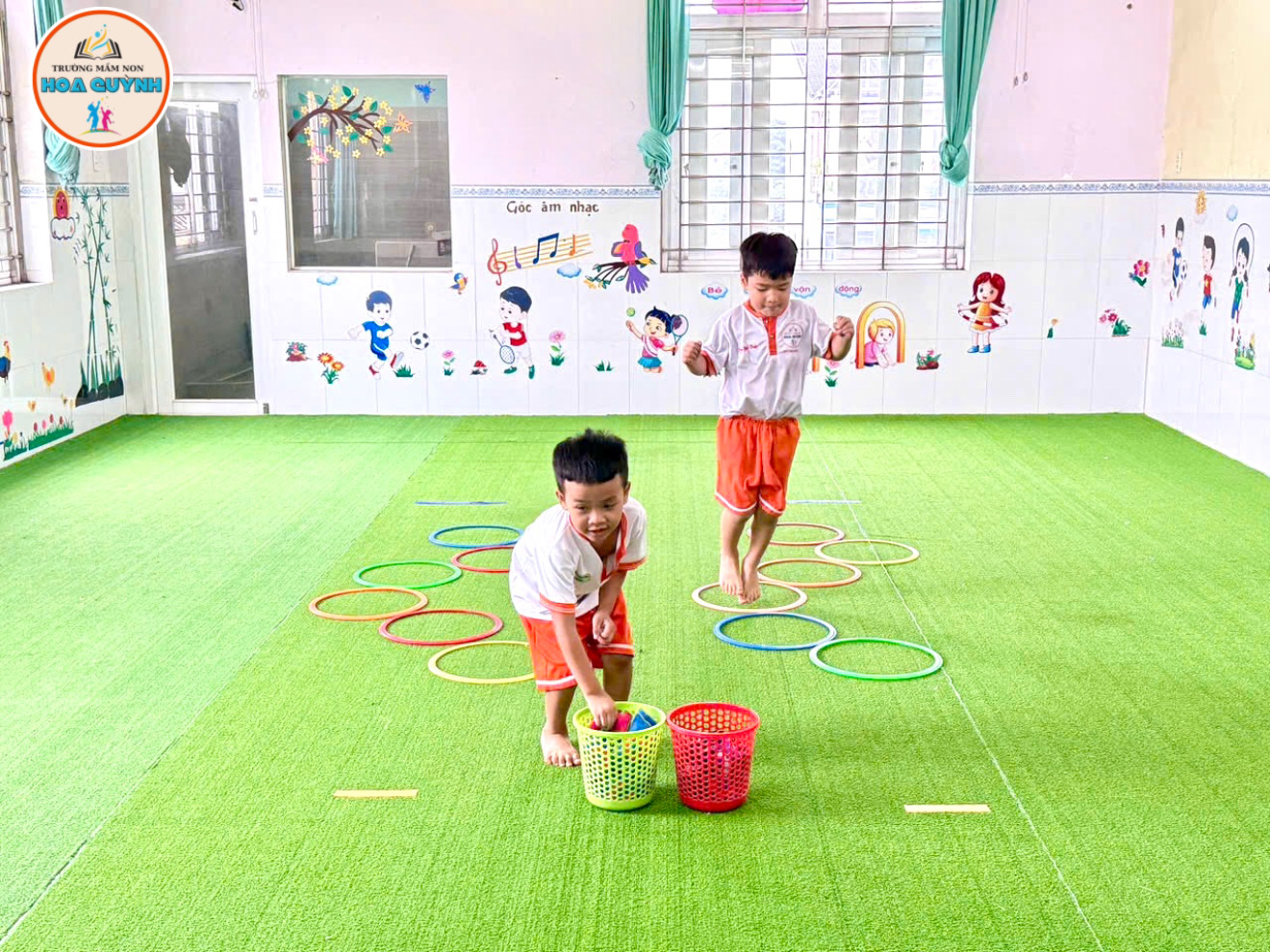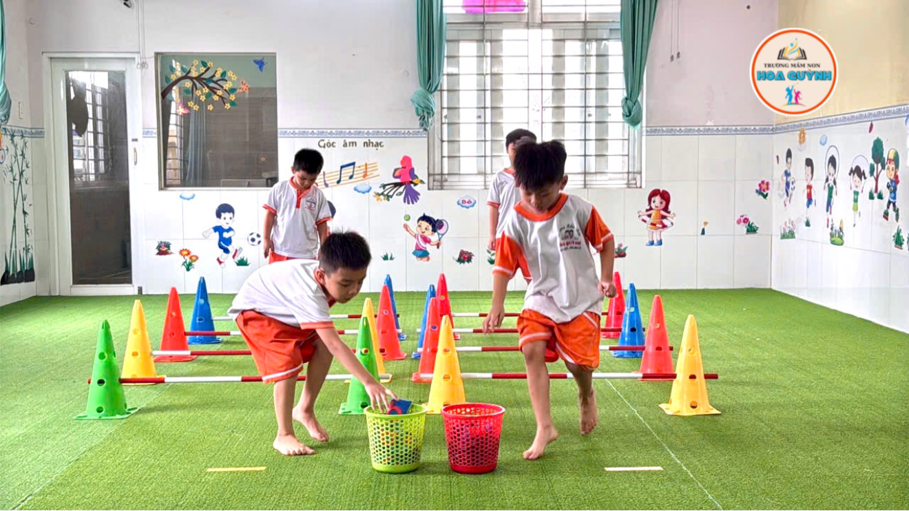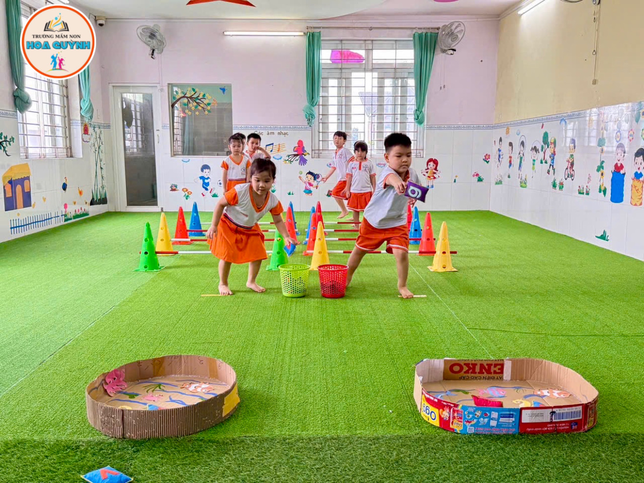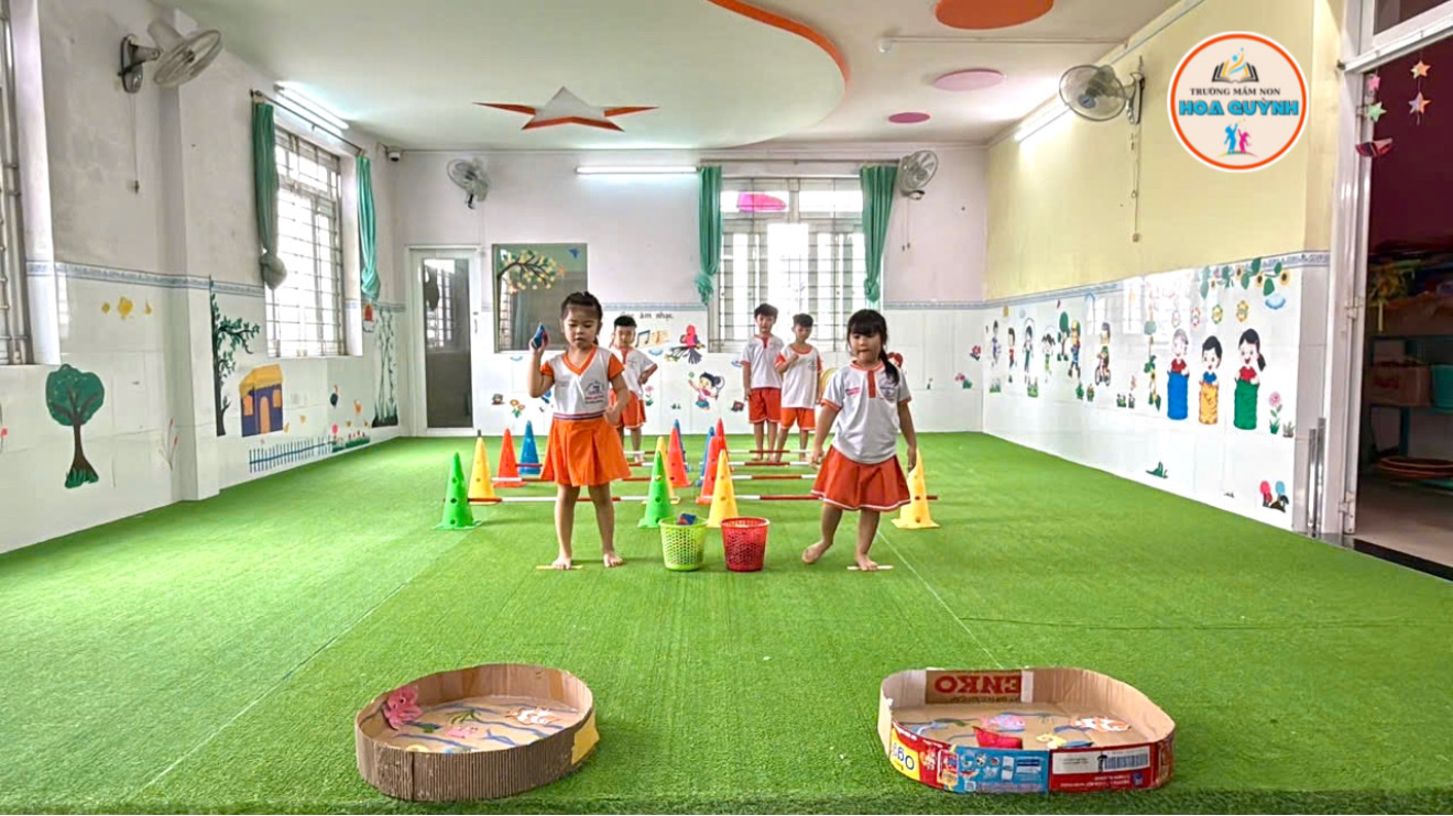 🥰 Bài tập phối hợp vận động bật liên tục và ném xa qua trò chơi “Ném thức ăn cho cá” mang lại cho các bạn nhỏ khối Lá những lợi ích như: