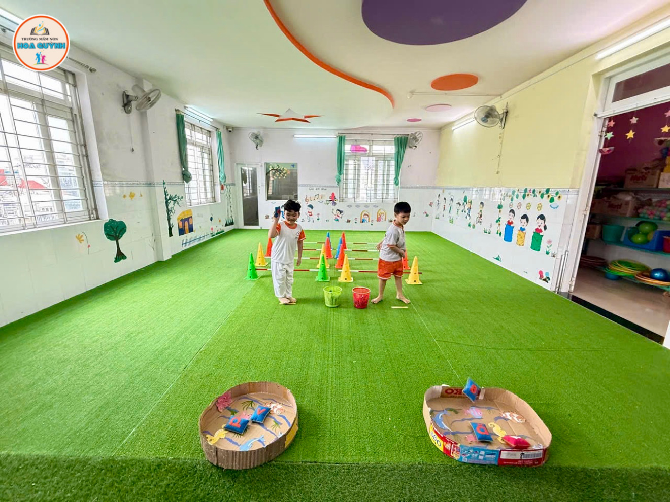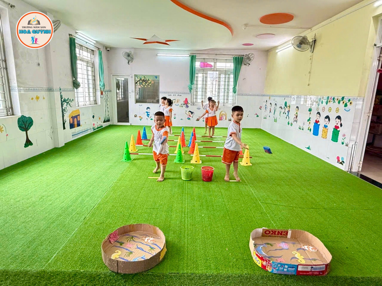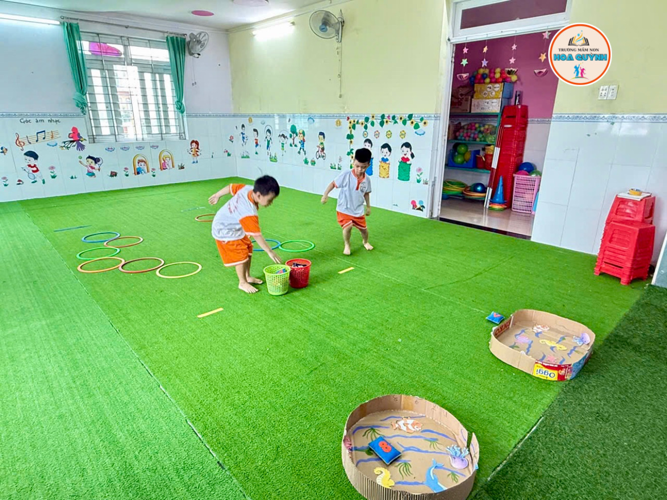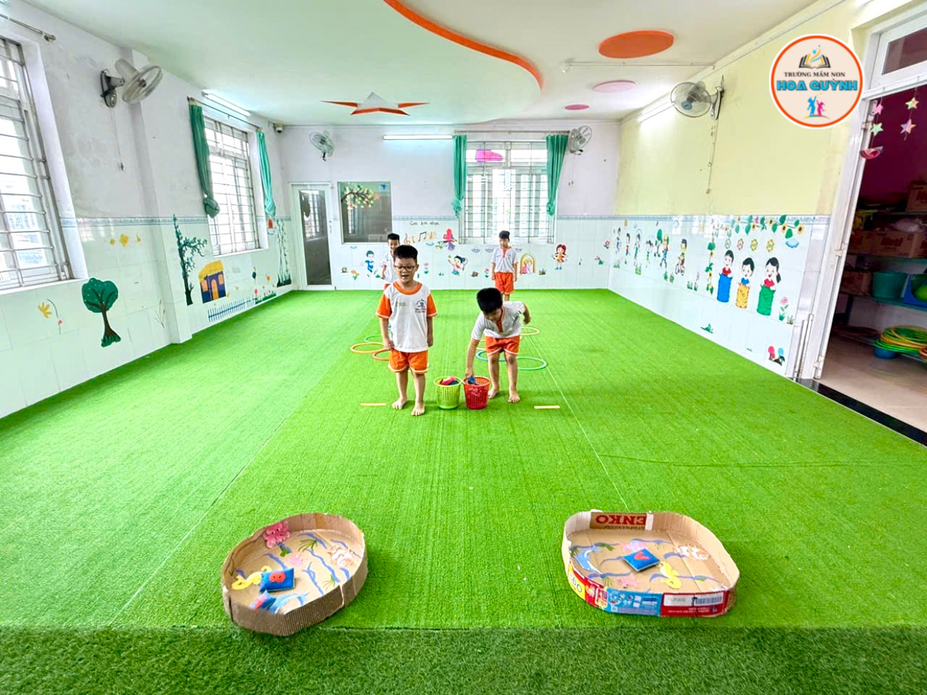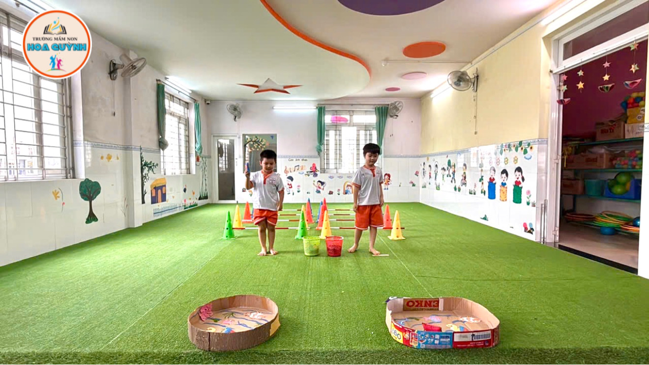🥰 Bài tập phối hợp vận động bật liên tục và ném xa qua trò chơi “Ném thức ăn cho cá” mang lại cho các bạn nhỏ khối Lá những lợi ích như:
