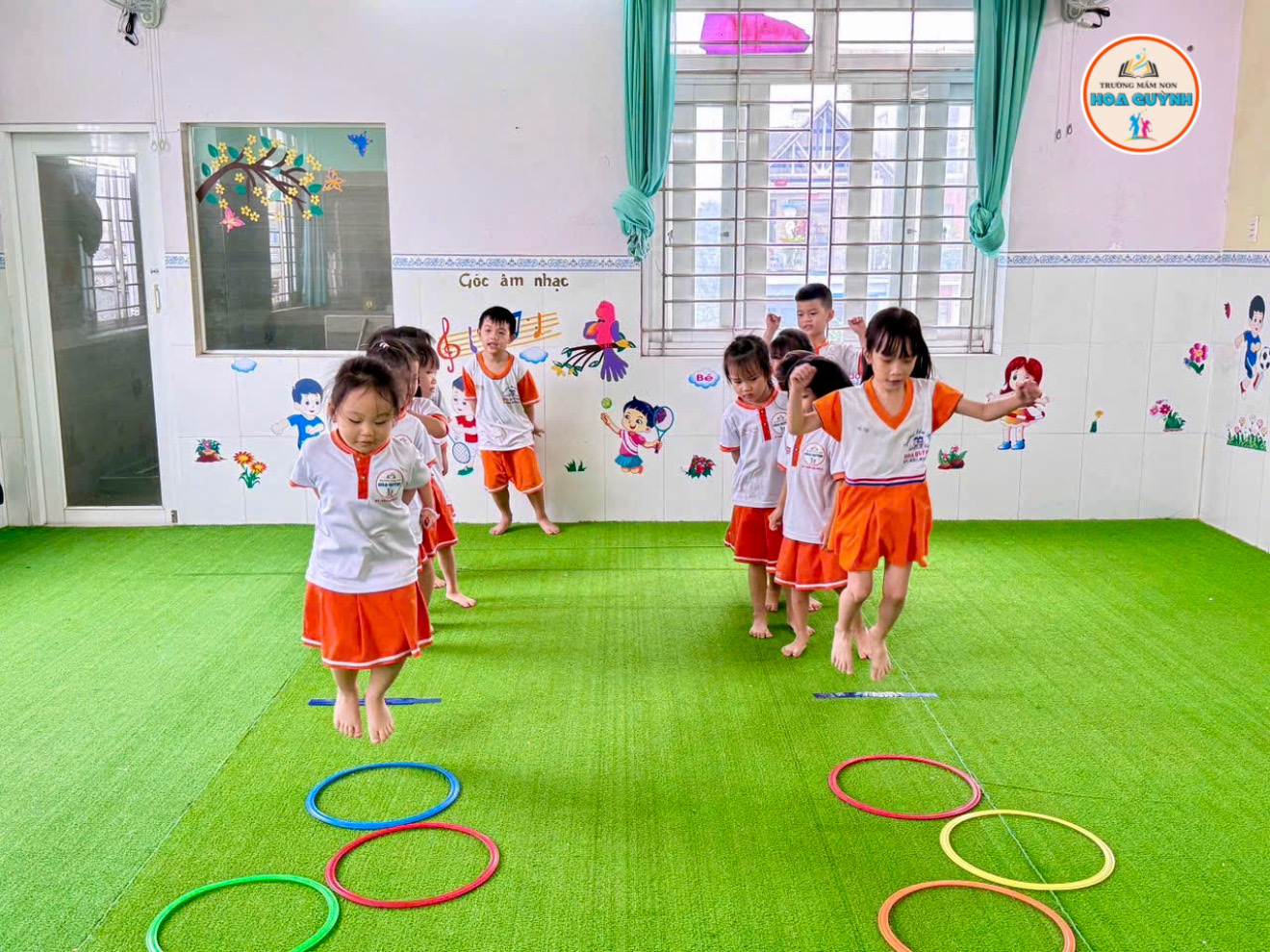 👉 Tăng cường sức khỏe, linh hoạt, biết tập trung và phối hợp các động tác, đồng thời phát triển tinh thần vui chơi, hứng thú vận động. Mời ba mẹ cùng xem các con tập luyện nhé!