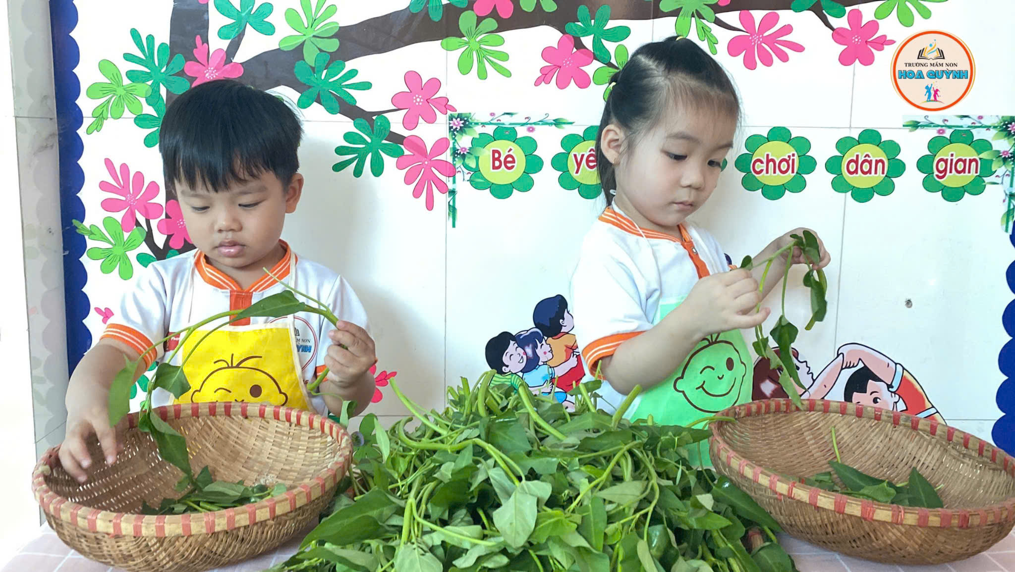 🍀 Các bé cưng lớp Nhà trẻ cùng cô làm quen với cây rau muống. Các con được quan sát thật gần, học gọi tên cây rau, lá rau, thân rau và nhận biết màu xanh mát mắt của rau muống. 🌿